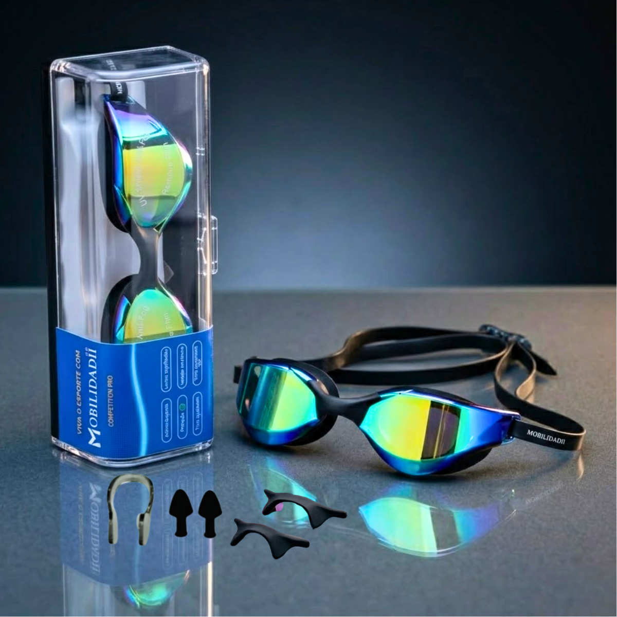 Óculos de natação espelhado ideal para atletas e amantes da natação que buscam qualidade e conforto.